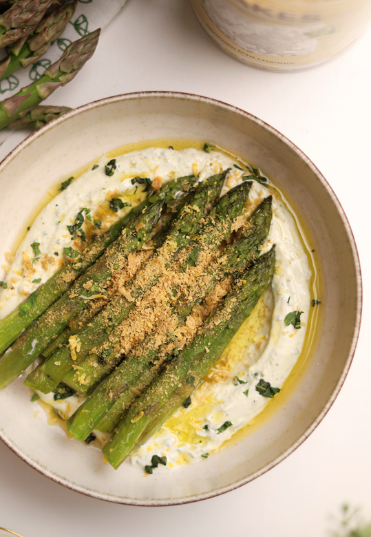 Ніжна спаржа з кремовою намазкою та пікантними Flakes із середземноморськими травами