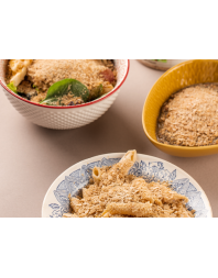 При виготовленні вони обробляються за температури вище 100°C, що робить їх неактивними: вони вже не можуть бродити, але досі містять велику кількість поживних речовин. До дріжджових пластівців ми додали середземноморські трави тож тепер приємний сирно-горіховий смак доповнився користю та смаком середземноморських трав.